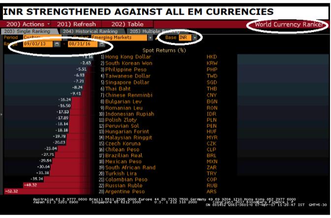 In the market, there is a tendency to use a narrow scope of the US Dollar to measure how well the currency is fairing. It is a flawed way to do so. We need to compare Rupee against a basket of currencies, especially the other EM currencies. My Bloomberg terminal clearly shows that there has been a tectonic shift in how in Rupee’s performance against the peers before 2013 and after 2013. Between the years of 2011 to 2013, high inflation and low real rates add to that the growing economic and political risks, made Rupee one of the worst performing currencies in the emerging market space. However, with Dr. Rajan taking control of the monetary policy and Mr. Modi taking control of the India’s political leadership, things changed dramatically for the currency. Indian Rupee became the best performing currency in the EM space. However, between the months of May 2014 to January 2017, Rupee’s strength was hidden from the eyes of those who used the USDINR scope to measure its performance. A super strong US Dollar overseas, due to divergent monetary policy as well as an aggressive dollar mopping exercise from RBI did not allow for the Rupee to appreciate against the US Dollar. However, the extent of Rupee’s depreciation was much less than our peers, making us the strongest currency in the basket.