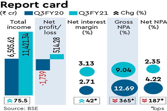 Provisions and contingencies for Q3FY21 were at Rs 2, 585 crore as against Rs 4,555 crore in the corresponding quarter of previous year. Specific loan loss provisions for Q3FY21 were at Rs 738 crore, compared to Rs 4, 705 crore in Q3FY20.