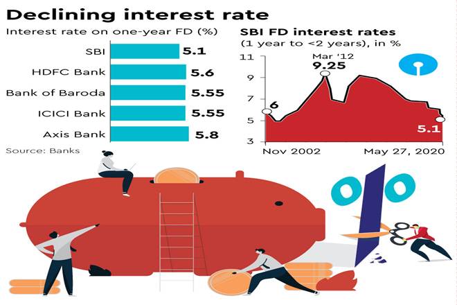 In a blow to savers, interest rates on fixed deposits have plunged to a 17-year low after State Bank of India (SBI) on Wednesday slashed the coupon on a one-year deposit by 40 basis points to 5.1%; in November 2003, the lender was offering 5% for one-year money.