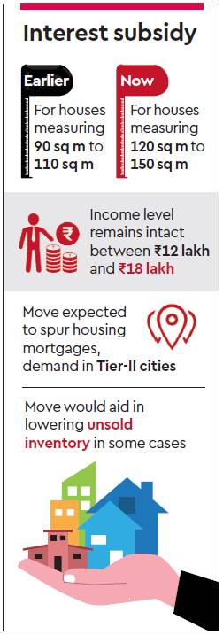 The government on Thursday made loans cheaper even for slightly bigger homes bought by middle-income groups in a move that should boost demand and help kick-start the real estate sector. The pace of home purchases has tapered off sharply for several reasons; while buyers have been waiting for prices to come off, the roll-out of rules under Real Estate Regulatory Authority (RERA) in July has held back new launches. Demonetisation too is believed to have hurt home sales; the inventory of unsold apartments across India is estimated at close to Rs 6 lakh at the end of September. Keki Mistry, vice-chairman, Housing Development Finance Corporation, noted the lower interest for larger homes should spur purchases. However, the caveat that those already owning a property would not be eligible to a lower interest, Mistry felt, should be done away with as there were several buyers wanting a second home. The Cabinet on Thursday approved a proposal that will allow those with an annual income of up to Rs 12 lakh to buy or build a house of up to 1,200 sq ft; earlier the area was capped at 900 sq ft. Those with an annual income of up to Rs 18 lakh are now eligible for loans at a softer rate to buy or build a home covering 1,500 sq ft; this was 1,100 sq ft earlier. Purchases in the secondary market are also covered by the scheme.