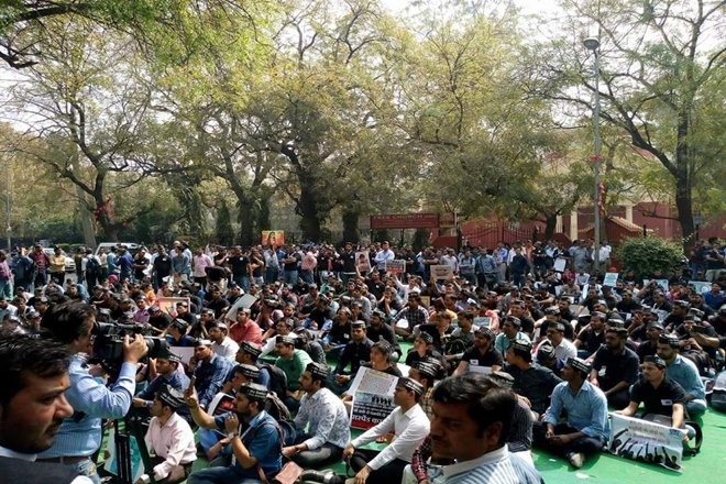 In the wake of the recent Punjab National Bank scam, the members of United Forum of Bank Unions (UFBU) staged a protest in Delhi today regarding demanding a tough action on all those involved, connected and responsible for over Rs 12000 crore scam. On March 9, UBFU had said it would organise a “massive” dharna in Delhi on March 21 in support of its demands. The demands include taking tough action on all those involved, connected and responsible for the PNB fraud. The Bank Unions Forum had called for the dharna in protest against the way fraud cases are being handled by Banks, RBI and Central Government tarnishing the image of all the bankers, victimisation of lower level Bank Staff. It has also demanded not to single out any lower level staff, not to exclude RBI’s role from the investigation, avoid harassment of employees and officers by mass transfers, thorough probe by Joint Parliamentary Committee and restore people’s confidence in the banking system.