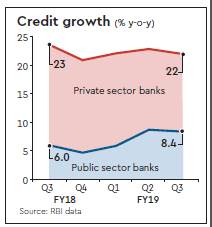The credit growth of private banks in the third quarter of the current fiscal was at 22% year-on-year (y-o-y), which remained over 20% for the fifth consecutive quarter. However, the credit growth of the public sector banks remained subdued at 8.4% y-o-y, showed RBI data.