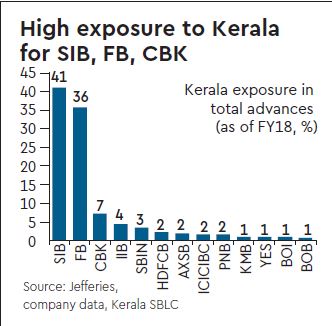 Overall loan exposure to Kerala was 3% in FY18 (2.8% for SOE banks & 4.2% for private banks). South Indian Bank (SIB IN,