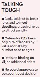 With a view to facilitating consensus, the RBI lowered the threshold needed for implementing a CAP — decisions agreed to by a minimum of 60% of creditors by value and 50% of creditors by number will now be valid. Earlier, 75% of the lenders by value and 60% by number needed to sign off on a CAP.