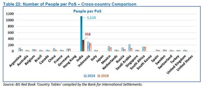 Even as digital payments have significantly grown after demonetisation, the lack of infrastructure is still a major roadblock in Modi’s ‘Digital India’ mission. In the last five years, the digital payments in the country have witnessed a CAGR of 61 per cent in terms of volume but the density of population dependent on a PoS terminal continues to be the highest. “While India made considerable progress with reference to the absolute number of PoS terminals deployed, the density of population dependent on a PoS terminal continues to be high at 358,” RBI said. While this is a drastic improvement from the 1124 persons per PoS terminal in 2014, other CPMI countries had a better deployment rate, the central bank added.