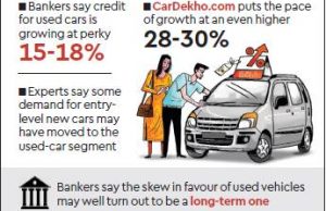 Bankers say the skew in favour of used vehicles may well turn out to be a long-term one as the production and sale of new cars shoots up in the years ahead. Narayanan pointed outthat India has a population of almost thirty million cars and would be adding up to four million cars every year. “So when car sales are so high, those vehicles will obviously have to be exchanging hands and we will be mimicking the way the developed countries have moved,” he said.