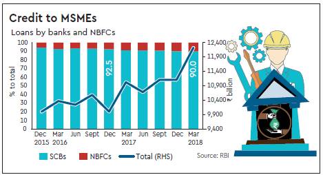 The share of credit provided by banks to micro, small and medium enterprises (MSMEs) has declined since September 2016, even as the share of loans by non-banking financial companies (NBFCs) nearly doubled to 10% between December 2015 and March 2018, shows research by analysts at the Reserve Bank of India.
