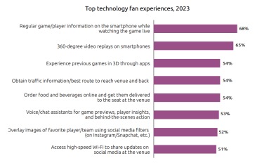 According to the report, fans value their smartphone as a companion to enhance the viewing experiences, whether at home or at the venue. Over 68% of fans have used a mobile device to receive regular game/player information while watching the game live, and 65% for 360-degree video replays. 68% of fans would also like to try using their mobile device to get player information, live stats etc. by pointing at players while present at the venue, using augmented reality. Finally, fans would also be interested in enhanced sports experiences such as in the metaverse. Two thirds of them, for example, would be interested in purchasing digital merchandise to wear in virtual worlds or attending games, and socialising virtually with fans or players in a virtual sports venue.