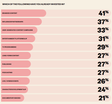 The report also states that 81% of CMOs opined that creativity is more crucial to marketing than ever before. Furthermore, 83% of CMOs agree that creativity is essential for driving customer experience (CX) transformation, and 80% believe that a creative approach is crucial for addressing sustainability challenges in business. 41% of surveyors are investing in branded content with influencer partnership cutting a close second at 37%. Only 33% CMOs favour user generated content and only 21% are in favour of making documentary content, as per the report.