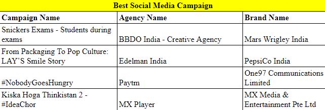 Meanwhile, the award for the Best Social Media Campaign was shared by four brands– Mars Wrigley India for their ‘Snickers Exams – Students during exams’ campaign, PepsiCo India for their ‘From Packaging To Pop Culture: LAY’S Smile Story’ campaign, One97 Communications Limited for their ‘#NobodyGoesHungry’ campaign, and MX Media & Entertainment Pte Ltd for their ‘Kiska Hoga Thinkistan 2 – #IdeaChor’ campaign. Further, the award for Best Video Ad was won by Motilal Oswal Financial Services Limited for their ‘Think Equity. Think Motilal Oswal’ campaign and ICICI Lombard General Insurance for their ‘Shubh Deepawali Savdhaan Campaign.’