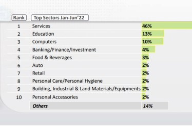 According to the data, services sector continued to maintain its top positions as the most advertised sector and accounted for 46% share of ad insertions during Jan-Jun’22 followed by education with 13% share. Interestingly, building, industrial and land materials/equipments entered in the list of top 10 sectors and accounted for two percent share of ad insertions pie. The top five sectors accounted for 55% share of the overall digital ad insertions.