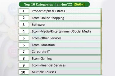Properties/Real Estates category overtook Ecom-Media/Ent./Social Media and topped the digital advertising charts accounting for seven percent share of ad volumes, with the latter accounting for six percent share and occupying the fourth position. Ecom-Financial Services was the only new entrant among the top 10 categories in Jan-Jun’22. The report stated that the top 10 categories added 46% share of digital ad insertions