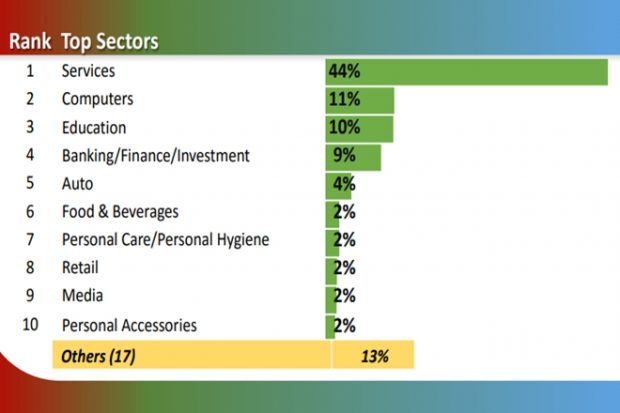 According to the data, services sector continued to maintain its top positions as the most advertised sector and accounted for 44% share of ad insertions during Jan-Jun’21 followed by Computers with 11%. Interestingly, retail entered in the list of top 10 sectors and accounted for 2% share of ad insertions pie. The top five sectors remained unchanged and accounted for 78% share of the overall digital ad insertions.