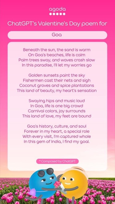 To pay homage to the romantic hotspots in the top 14 searched destinations, Agoda commissioned AI-powered chatbot ChatGPT to compose unique poems.