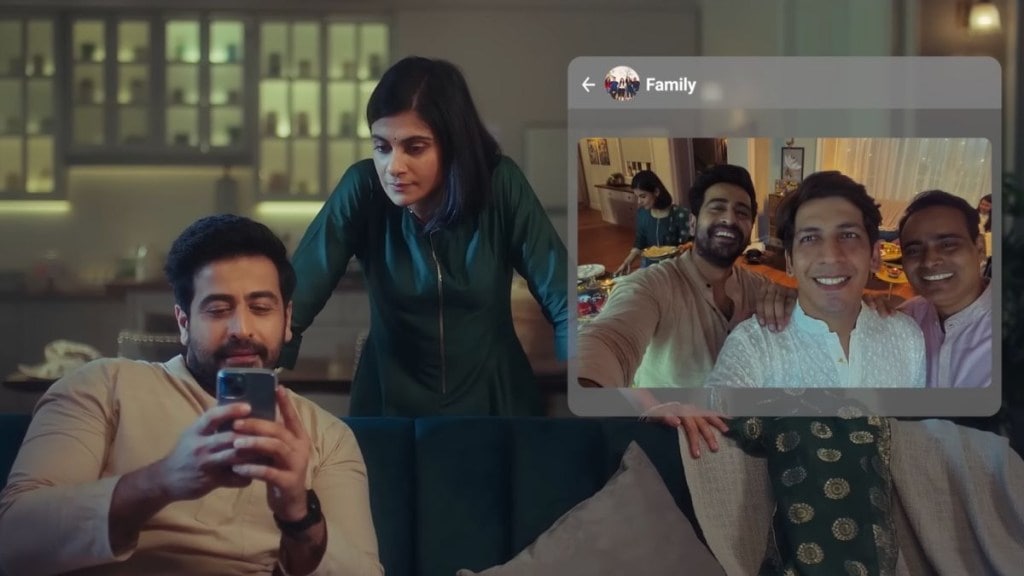 The film depicts a post-family dinner scenario where the man is seen sitting and browsing through his phone, while the woman is clearing the table and attending to the baby. The man asks his wife about the photos received on the family group from the dinner earlier that day. She asks him to find a picture in which she is also a part of the festivities. In most pictures, she is in the background doing chores and missing all the festivity and celebrations.