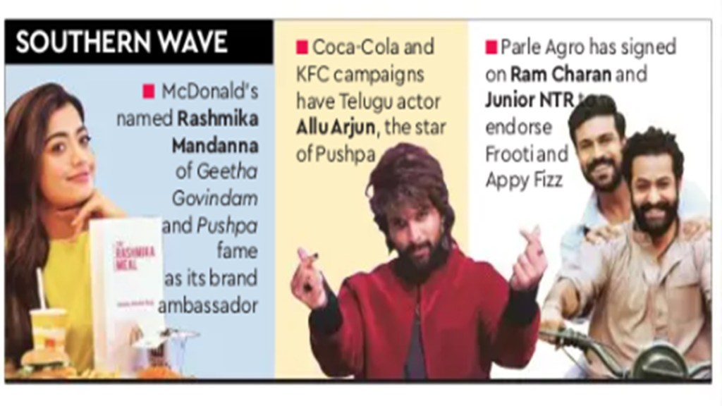 There’s more. McDonald’s has named Rashmika Mandanna of Geetha Govindam fame as its brand ambassador; and Parle Agro has signed on Ram Charan and Junior NTR to endorse Frooti and Appy Fizz.