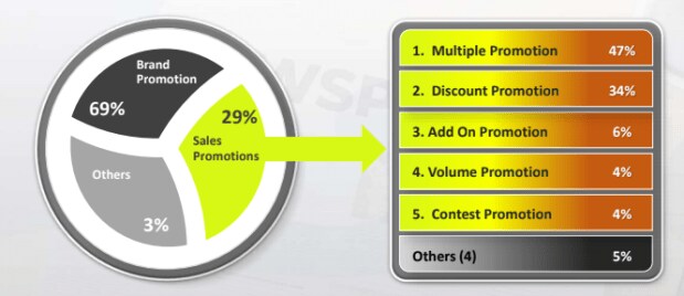 Sales Promotion advertising covered 29% share of ad space in Print during January-June 2023. Among sales promotions, multiple promotion was on top with 47% share of ad space followed by discount promotion. Top two promotions solely covered more than 80% share of ad space during H1, 2023.