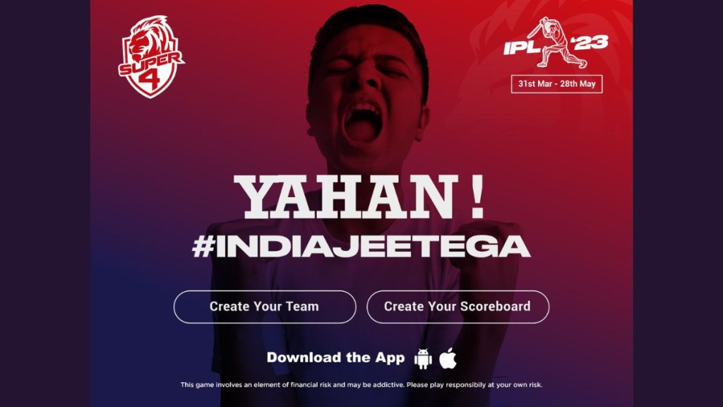 Fantasy gaming app, Super4, has announced today the launch of #IndiaJeetega campaign ahead of IPL 2023. The app will provide the existing and new users with a unique platform to play and earn through their Super4 app. As per the company, the Super4 IPL bonanza will have two offers, the first one running from 1st to 7th April where the user will be given a chance to participate in contests for free and yet have the opportunity to earn cash rewards.