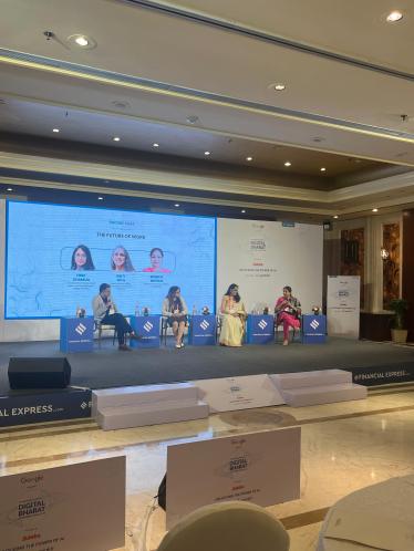 Next up, we have fireside chat- ‘ The future of work’. For this discussion, we have our panellist- Monica Mudgal, CHRO, HealthKart; Hina Dhamija, executive VP and head- HR, Religare Broking; Kriti Seth, CEO, IT-ITES Sector Skill Council, Nasscom. The session will be moderated by Roshun Povaiah, editor, FE Digital.