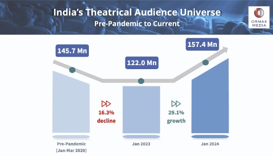 An annual report from media analytics firm Ormax Media sheds light on the growth of the Indian theatrical market. The report, based on research conducted in January 2024 among 8,500 Indian audiences across both urban and rural areas, reveals growth in the number of theatre-goers in India vis-à-vis the previous year.