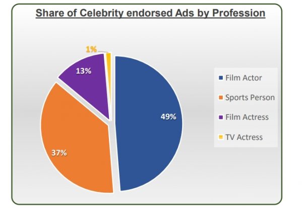 Interestingly, the total share of celebrity endorsed ads in IPL 14 stands at 48% with non-celebrity ads dominating with 52% share of total ads. Out of this, film actors led in brands’ endorsement with 49% share of ad volumes, followed by Sports Persons with 37% share during IPL 14.