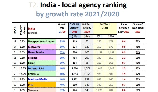 Furthermore, with a 153% growth rate in the three year period between 2018-2021, dentsu X stood as the fastest growing agency, followed by Havas Media at 134% growth rate, Zenith at 114%, Lodestar UM at 91% and Starcom at 89% growth rate. These were followed by iProspect at 88%, Initiative at 79%, PHD 75%, Essence 66%, Carat at 66%.