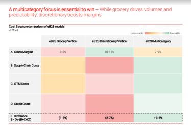 The report continues that the multi-category approach also helps optimise go-to-market (GTM) and credit costs. Vertical platforms focused only on grocery or discretionary categories have a tough time managing GTM costs because of their low retailer density, which results in lower throughput per feet-on-street (FoS) and because of low demand predictability. However, GTM cost optimisation for multi-category platforms happens through leveraging the same tech across all categories or portfolios, and further through aggregation of sub-categories within portfolios.
