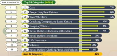 The report also highlighted leading advertising categories in the January-March 2023 quarter. As per the report, the top 10 categories accounted for a 41% share of ad space in print with cars occupying the top position with 7% ad volumes share. While real estate/ properties slid to second position in this quarter as compared to the same period last year. Interestingly, schools and retail outlets- clothing/textiles/fashion debuted during January-March 2023 quarter.