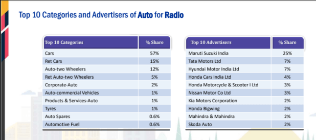 On comparing the categories in radio advertising on radio, ads for cars and ret cars ruled with 73% of the total ad volume share of auto sector with 52% share of ad volume share by top 5 advertisers in Y 2022.