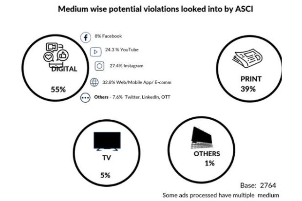Between April and September, the Advertising Standards Council of India (ASCI) processed 3,340 complaints against 2,764 advertisements which were found potentially violating the ASCI code. As per a report released by the company, 55% of the ads were found across digital channels whereas 39% were across print and 5% across television.