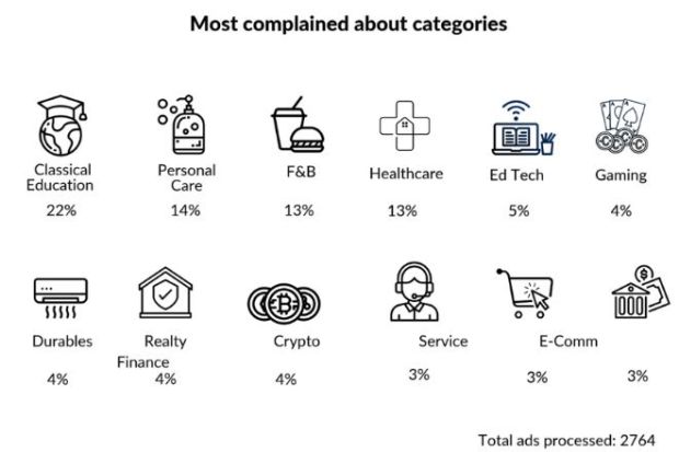 Additionally, the report stated that ASCI saw a 14% rise in the number of complaints alongside a 35% increase in the number of ads processed. It has additionally claimed that 65% of the ads were processed suo moto. As per the report, the education sector led the list as the most violative sector and accounted for 27% of the complaints. Of this, the report said that 22% belonged to the classical education category whereas 5% were from the ed-tech sector. Education was followed by personal care at 14%, both food and beverage (F&B) and healthcare at 13%, and gaming at 4%.