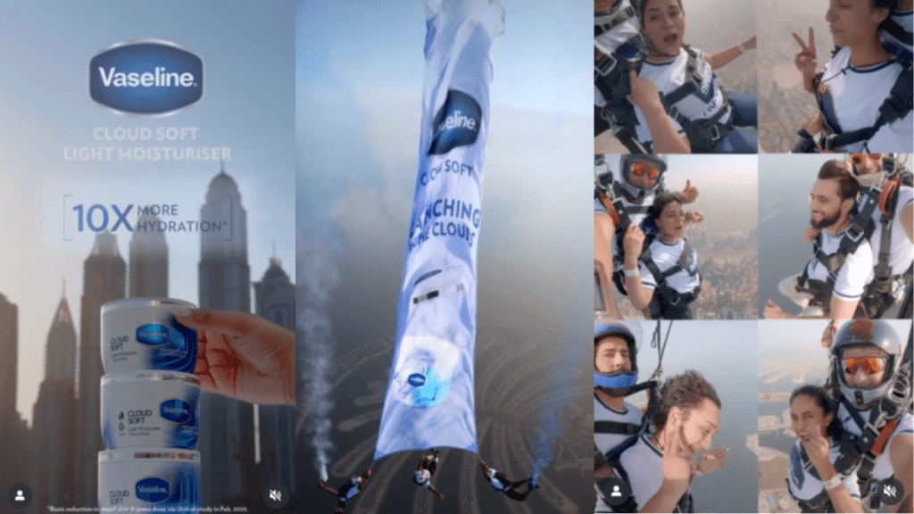 Vaseline India has chosen an unconventional setting for the debut of its new face moisturiser, thousands of feet above the ground. The company unveiled its Cloud Soft Light Moisturiser at Skydive Dubai in what it termed a “#LaunchInTheClouds” activation, marking its entry into the face moisturiser category.