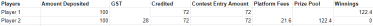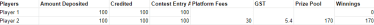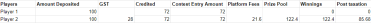 - 28% GST deducted on the face value which amounts to Rs 72 being credited as contest entry amount.
