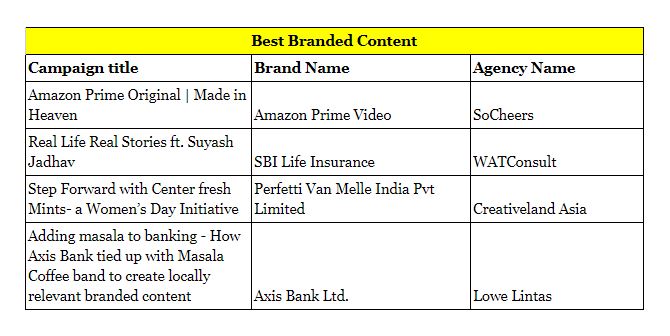 At the inaugural edition of the Financial Express BrandWagon ACE Awards 2020, 51 entries have been shortlisted from among the creative work entered for the year. The awards in total have 36 categories including Special Awards.