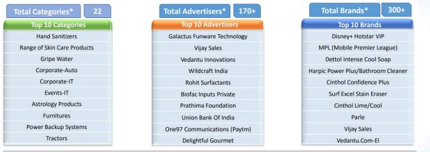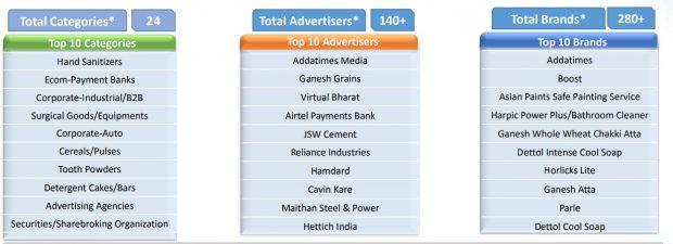 Kannada channels witnessed 2.4x growth in average ad volumes per day in week 26 (June 21-27, 2020) when compared to week 15 (April 5-10, 2020). Interestingly, while the number of categories and advertisers remained stable during May- June, brands registered 44% rise with the tally increasing to 515 brands advertised on the channels in June 2020 as opposed to 436 brands in April 2020.