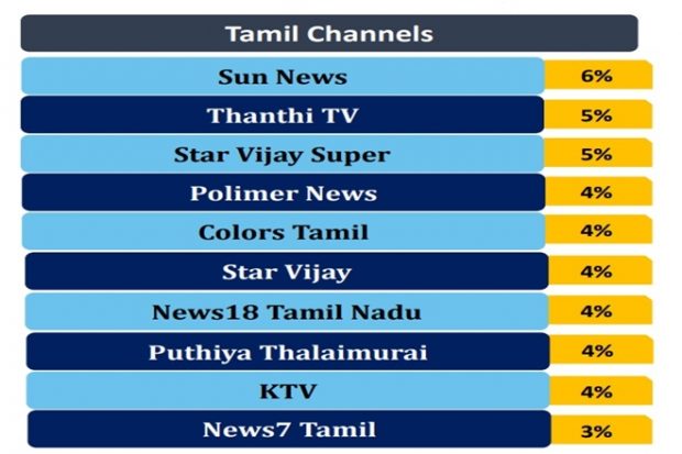 Hindustan Unilever emerged as the top spender with 26% ad volume share between April- June, 2020 followed by Reckitt Benckiser India with 8% share of ad volumes. Colgate Palmolive and Procter & Gamble claimed the third and fourth position with 4% and 3% share, respectively. Trailing behind was ITC at the fifth position with 2% share of ad volumes. During April-June 2020, Tamil channels witnessed over 260 advertisers and more than 400 brands exclusively advertising on Tamil channels including Chettinad Cement Corporation, Wildcraft India, Reliance Industries Ltd, among others.