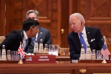 British Prime Minister Rishi Sunak, left, talks with U.S. President Joe Biden during the first session of the G20 Summit, in New Delhi on Saturday. (Image: AP/PTI)
