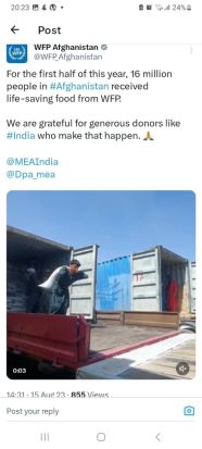 In a recent tweet, the UNWFP expressed, “For the first half of this year, 16 million people in Afghanistan received life-saving food from WFP. We are grateful for generous donors like India who make that happen.”
