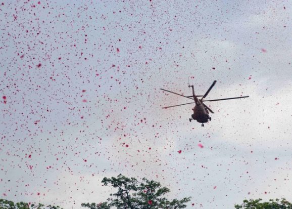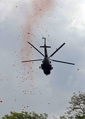 IAF’s Mi-17 showers petals over Chitranjan Institute, Kolkata express gratitude towards healthcare workers for their fight against COVID 19