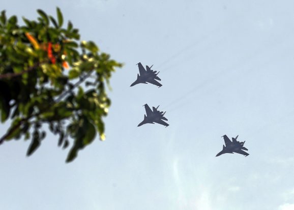 Assam: IAF’s Su-30MKI fighter aircraft presents aerial salute over Guwahati to express gratitude towards #CoronaWarriors.