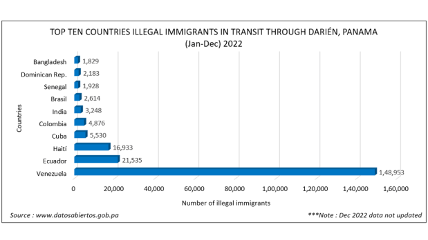According to the static data published in Open Data Source by Panama Government, the surprising numbers of illegal immigrants registered who transit through Darién, Panama in (Jan – November) 2022, Venezuela recorded 148953 followed by Ecuador 21535, Haiti 16933, Cuba 5530, Colombia 4876, Brazil 2614 and India 3248.