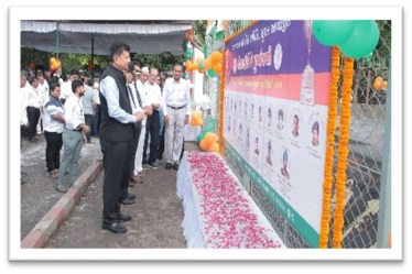 This was followed by a ‘Tiranga Yatra’ taken out from BAPS Mandir to Sardar Patel’s Statue, Sardar Chowk, Mini Bazar. The response was overwhelming; school children, workers and the citizens of Surat of all ages had lined up on the side of the street through which the procession passed and showered their affection on the participants. There was a sense of heightened patriotism and with emotional music playing a large number of people had tears in their eyes. Cries of Jai Hind were resounding and the josh was overwhelming during the rally which lasted for three hours.