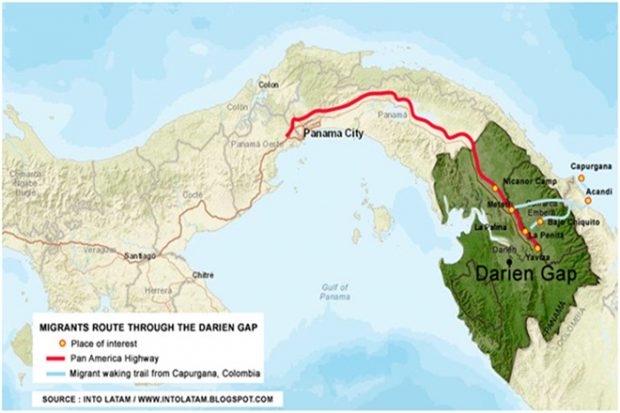 According to a paper published in Migration Policy Institute, after getting off the buses in the Colombian towns of Turbo or Necoclí, the illegal migrants must cross the Gulf of Úraba, where local fishermen can be hired as smuggling facilitators. It takes 6-8 days on foot and almost 10 days during the rainy season to cross the deadly Darien Gap.