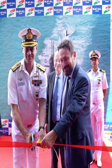 Rear Admiral KM Ramakrishnan, VSM, Flag Officer Commanding Karnataka Naval Area (FOK), in presence of Vincent Martinot-Lagarde, EVP Services of Naval Group, Laurent Videau, Country & Managing Director of Naval Group India, and other senior dignitaries.