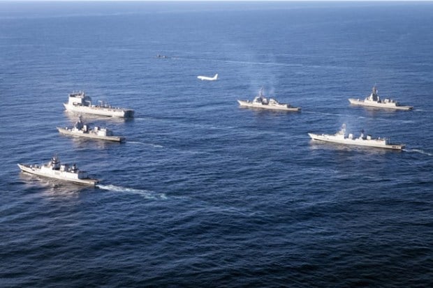 The assembly of naval assets, including the INS Kolkata, INS Sahyadri, and P8i Maritime Patrol Aircraft from the Indian Navy, joined hands with HMAS Choules, HMAS Brisbane, USS Raphael Peralta, and JS Shiranui, alongside submarines, fighter aircraft, maritime patrol aircraft, and shipborne helicopters.