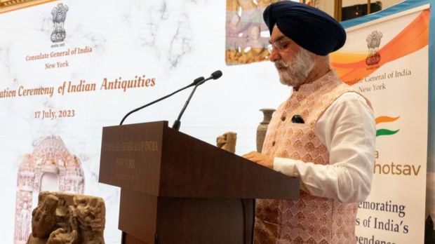 In the wake of the successful State Visit of Indian Prime Minister Narendra Modi to the United States in June 2023, an extraordinary event took place at the Indian Consulate in New York today. A repatriation ceremony for 105 trafficked antiquities was conducted, wherein the US side handed over these precious artifacts to India. Ambassador of India to the United States, Taranjit Singh Sandhu, expressed heartfelt gratitude to the Manhattan District Attorney, Alvin Bragg, his Anti-Trafficking Unit, and the Homeland Security Investigation team for their unwavering support and collaboration.