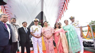 Others who were present during the launch ceremony included chief guest Vice Admiral Ajendra Bahadur Singh, Flag Officer Commanding-in-Chief, Western Naval Command, VAdm Kiran Deshmukh, Controller Warship Production and Acquisition and other senior officers of the Indian Navy and from the shipyard.