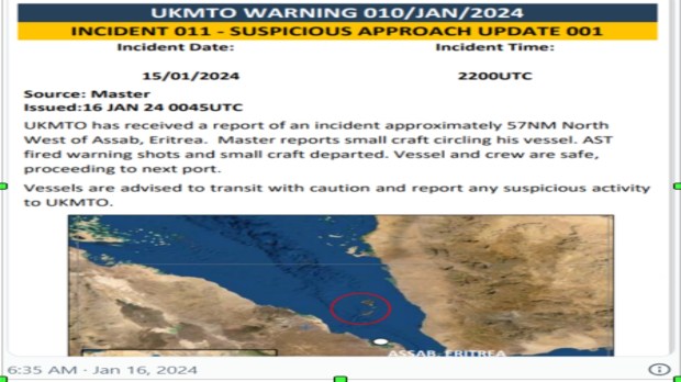 In another development, UKMTO reported the following:
