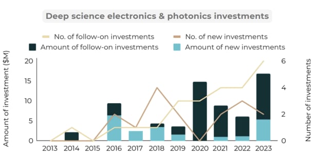 In the last five years, deep science in electronics has been driven by applications in space tech and telecom, with an increased focus on AI and chip design in more recent years.