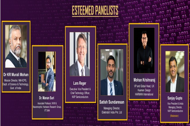 The panel was honoured by Lars Regar, Executive Vice President and Chief Technology Officer, NXP Semiconductors, Dr KR Murali Mohan, Mission Director, Department of Science & Technology, Government of India, Dr Manan Suri, Associate Professor, NVM and Neuromorphic Hardware Research Group, IIT Delhi, Satish Sundaresan, Managing Director, Electrobit India and Mohan Krishna Raj, VP & Global Head, UX Heuman Design, Harman International.